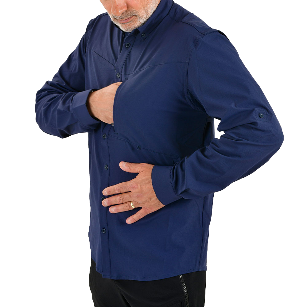 The Outlander Technical Field Shirt is purpose-built for urban search and rescue teams and technical field units operating in dynamic environments. Its lightweight, four-way stretch fabric delivers unrestricted mobility, while breathable mesh zones under the arms and back ventilation maintain airflow during high-output missions.